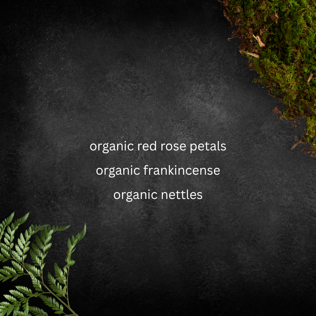 - Organic Nettles: Rich in vitamins and minerals, nettles offer deep hydration and revitalization, helping to tone and firm the skin. Known for their ability to promote circulation, nettles enhance the skin’s natural glow and help combat the signs of aging, restoring vitality to the complexion.
