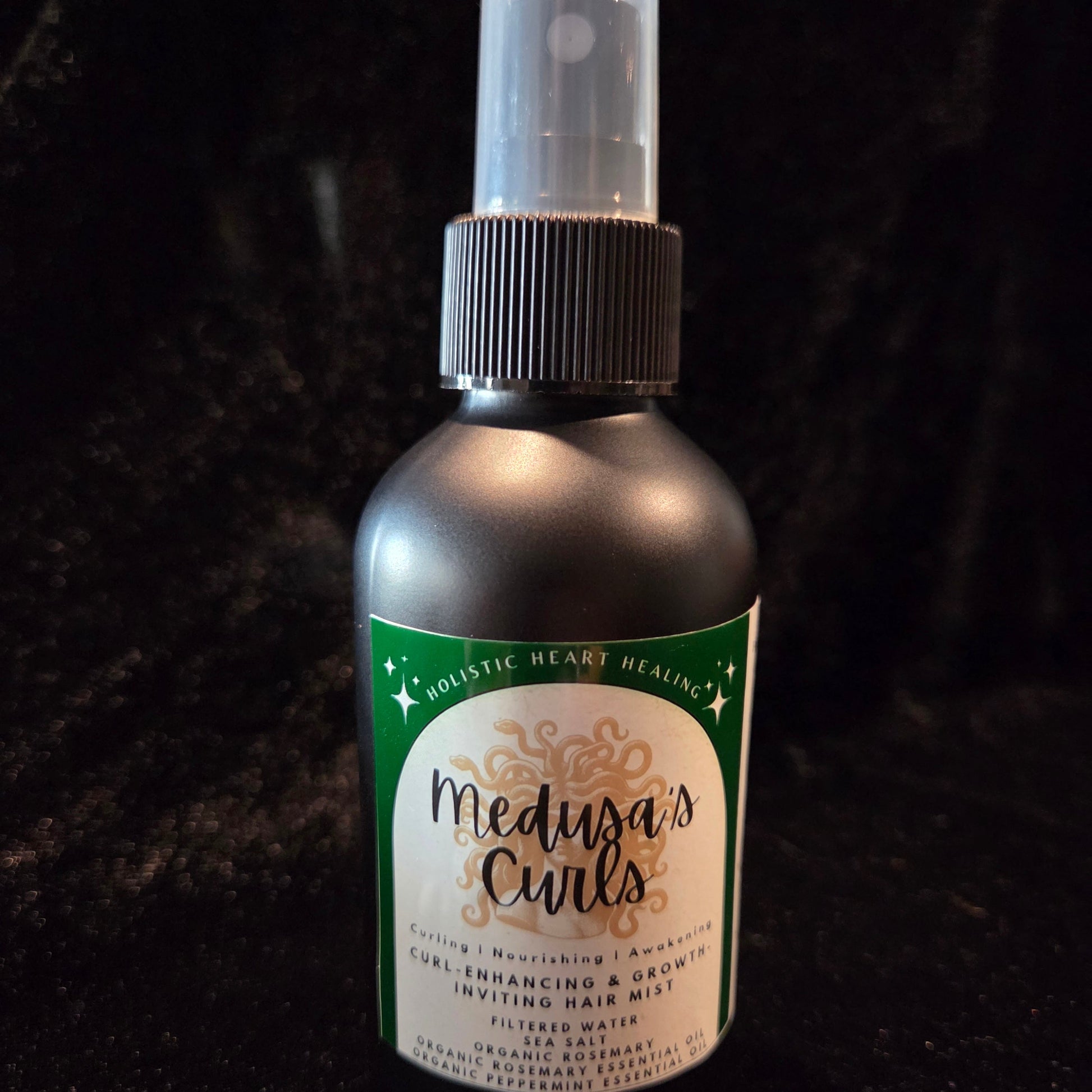 Unleash your wild beauty with Medusa’s Curls — a botanical hair elixir that celebrates the sacred power and untamed spirit of every strand. Inspired by the mythic goddess whose serpentine locks symbolized strength and transformation, this revitalizing spray enhances natural curl, adds texture, and nurtures healthy hair growth with every mist.